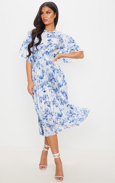 Large Floral Print Pleated Skirt Midi Dress Dorothy Perkins Uk